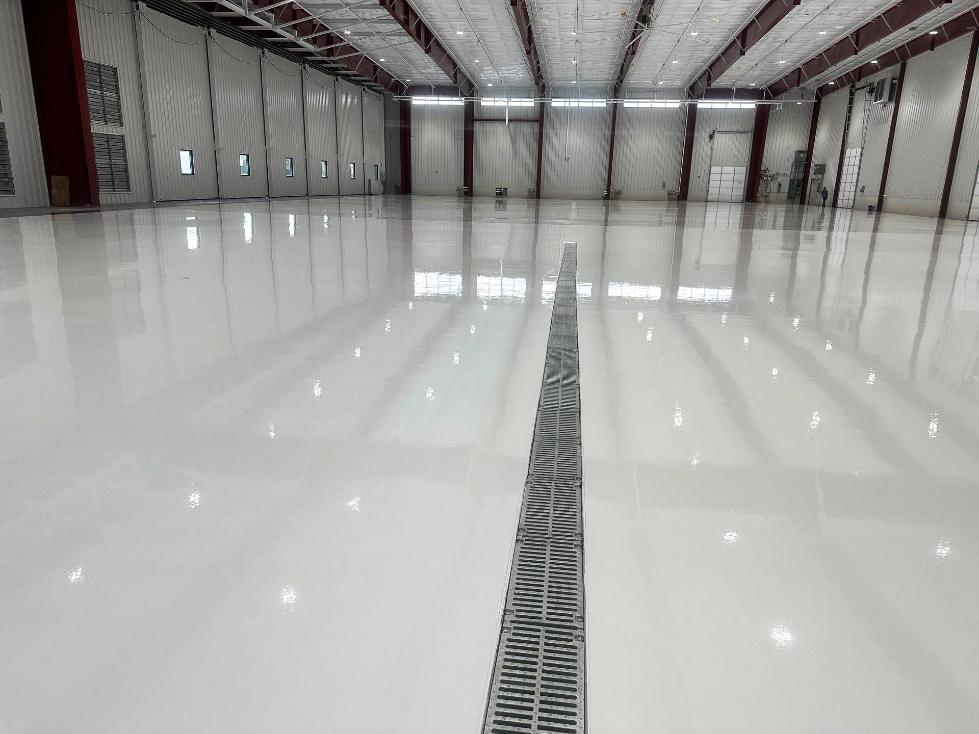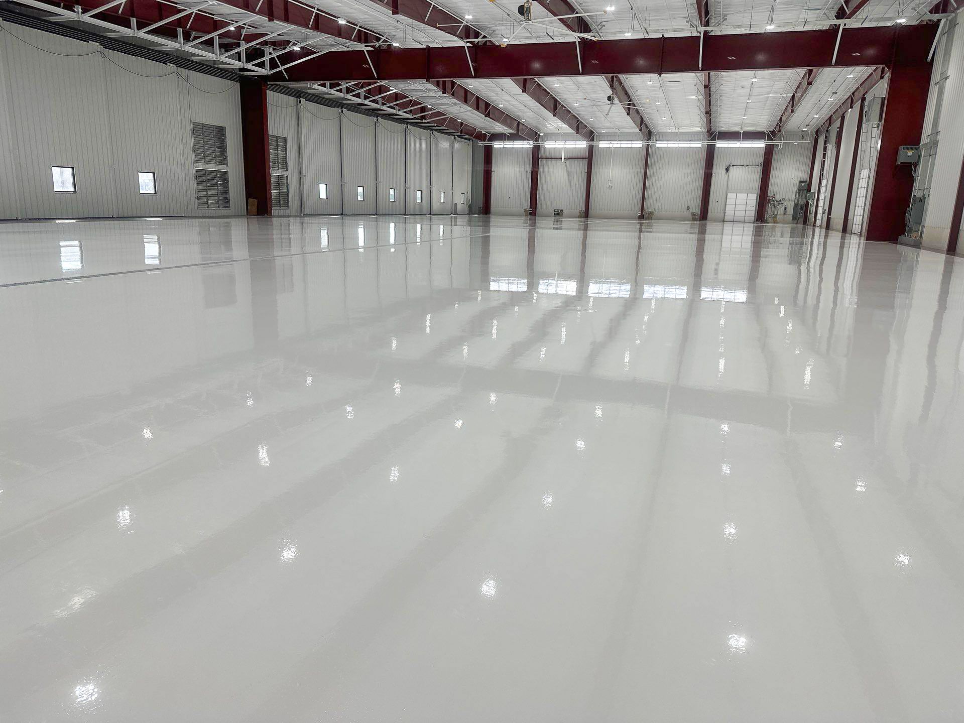 Industrial Applications Inc. recently completed the preparation and installation of a 3-coat epoxy urethane floor coating system across 36,000 square feet of hangar space in Middle Tennessee.